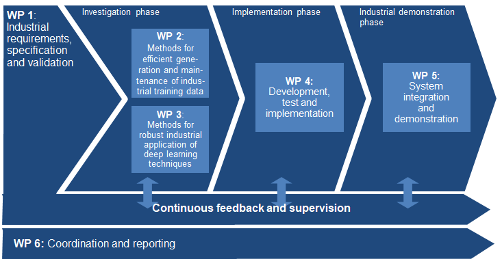 At the beginning of the project, the industrial requirements were specified and validated. in the investigation phase, according to the project plan, the implementation of different data augmentation techniques compatible with the production process has been accomplished to generate and maintain the industrial training data for different industrial use cases. For this training dataset, we investigated different deep learning methods to find a robust method.